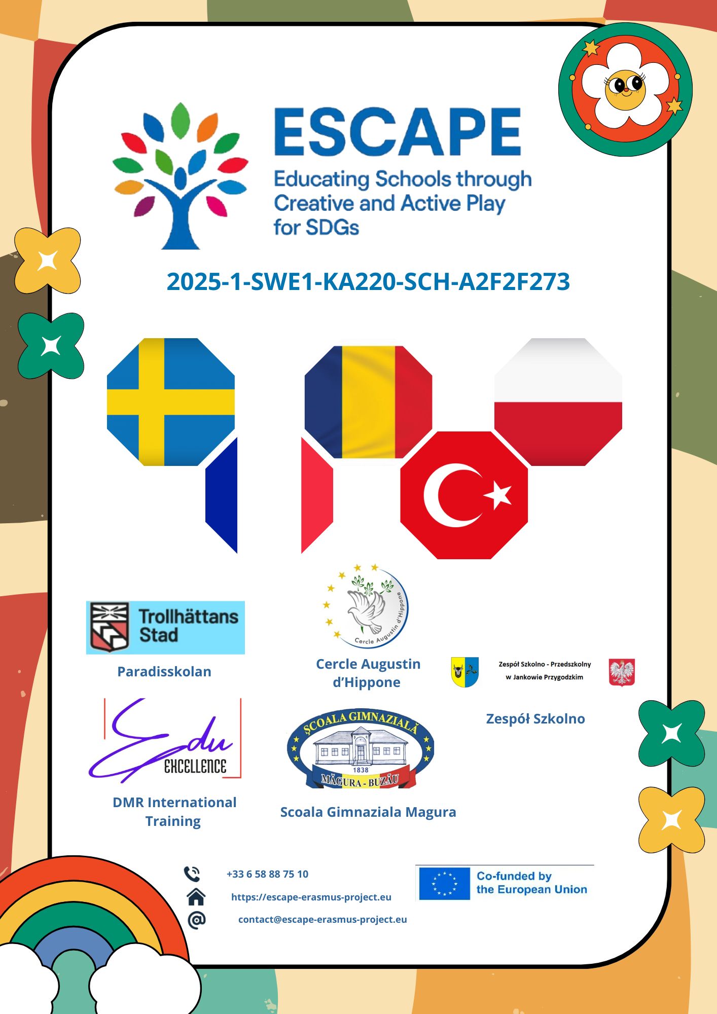 The ESCAPE project aims to enhance digital gamification skills among teachers, integrate Sustainable Development Goals (SDGs) into school education, and promote game-based learning through escape games. It will train 30 educators who will mentor 120 more, develop 18 multilingual escape games, and establish a Digital Hub as an Open Educational Resource (OER). The project fosters innovation, inclusivity, and sustainability in European education.