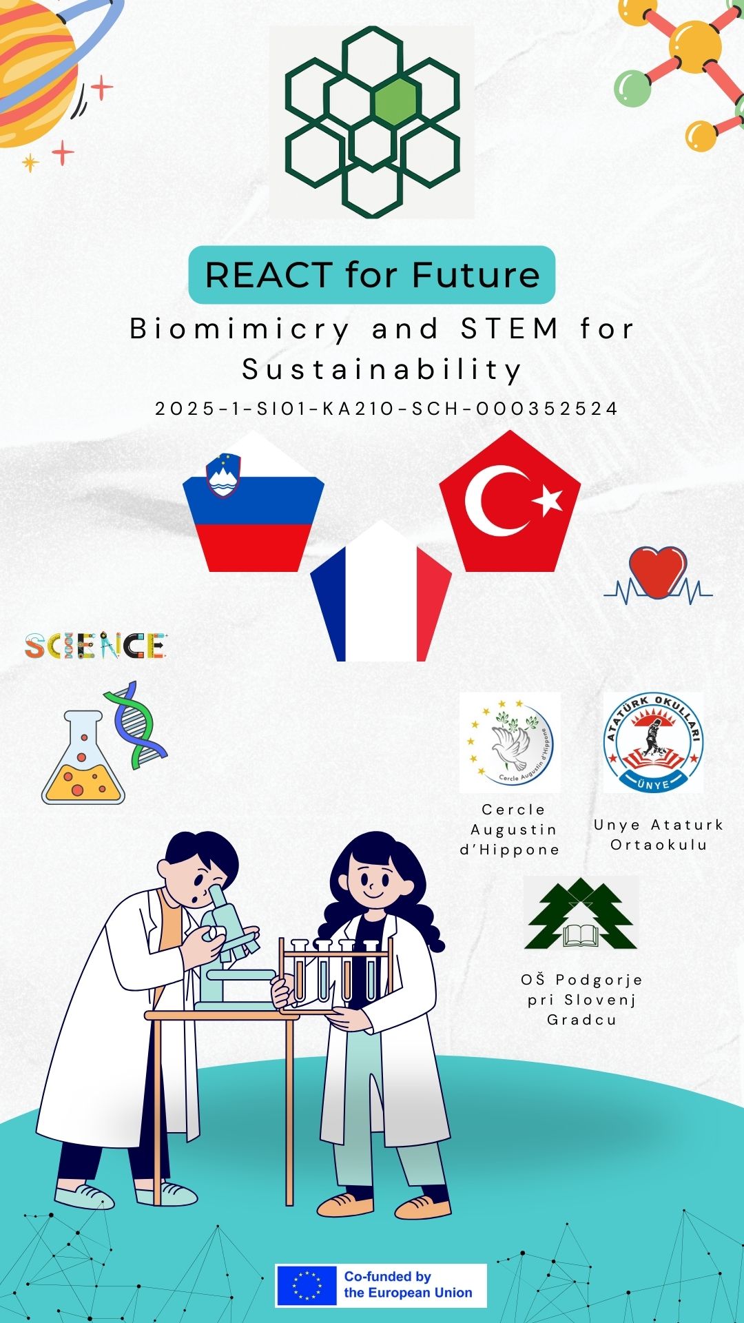 This project The project aims to enhance environmental education and sustainability awareness through experiential learning and the REACT strategy (Relating, Experiencing, Applying, Cooperating, and Transferring). This fosters student engagement and promotes interdisciplinary STEM education. The REACT strategy encourages students to connect knowledge to real-life experiences and work collaboratively to solve problems. This approach aligns with Slovenia’s education system (Eurydice,2023).